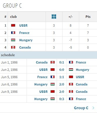 1986年世界杯加拿大小组赛赛果: